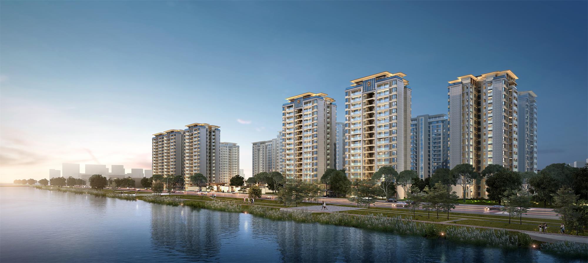 江山和鳴央璽項目位于犍為方舟新城核心區,占地面積70畝,容積率為2.0,建筑面積9萬㎡,項目由9棟高層和商業別墅組成,總共800余戶,采用一字形點式布局,半圍合出一前一后兩大中庭和四個園林,80%以上房源可觀濕地公…